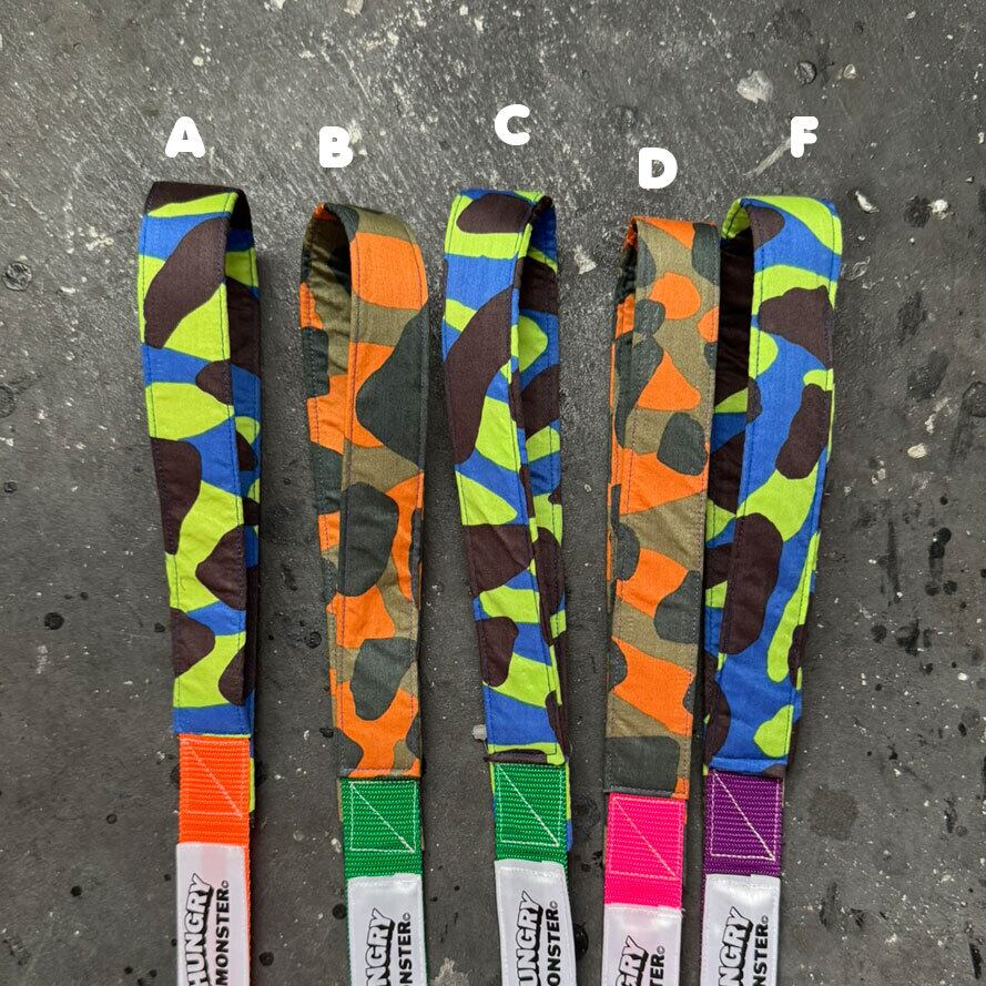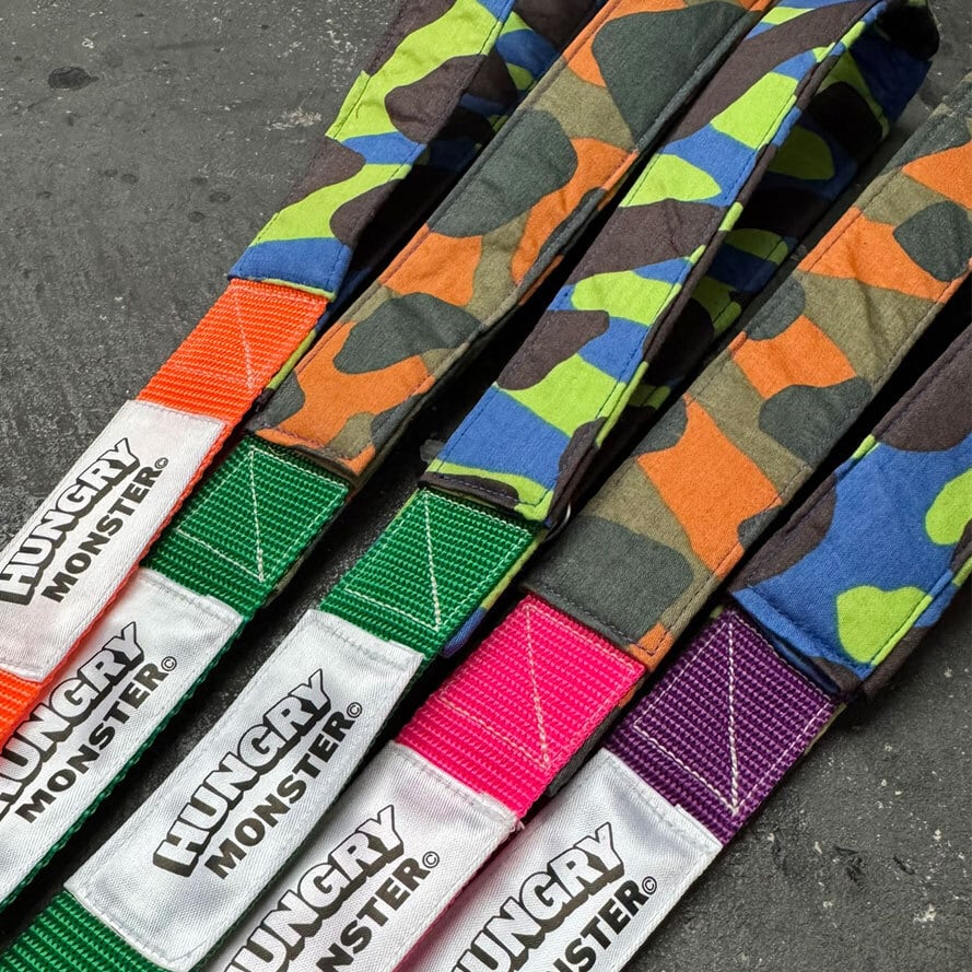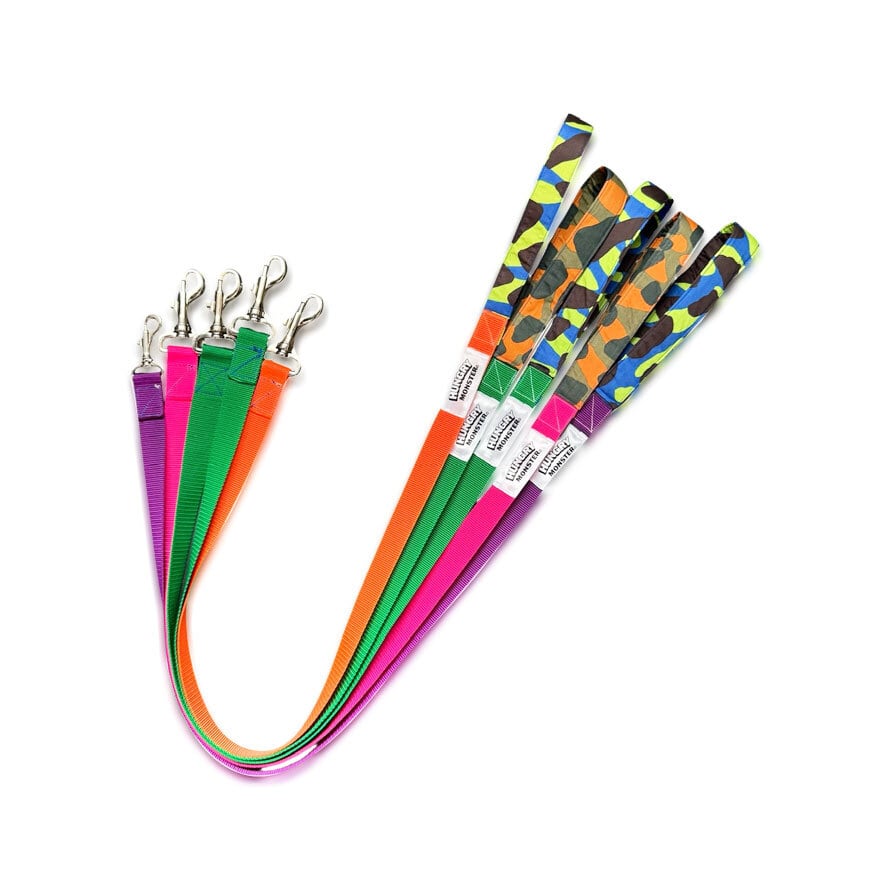・夜でも安全な目を引くカラーの幅2.5cmのナイロンベルトを使用したシンプルなリードです。