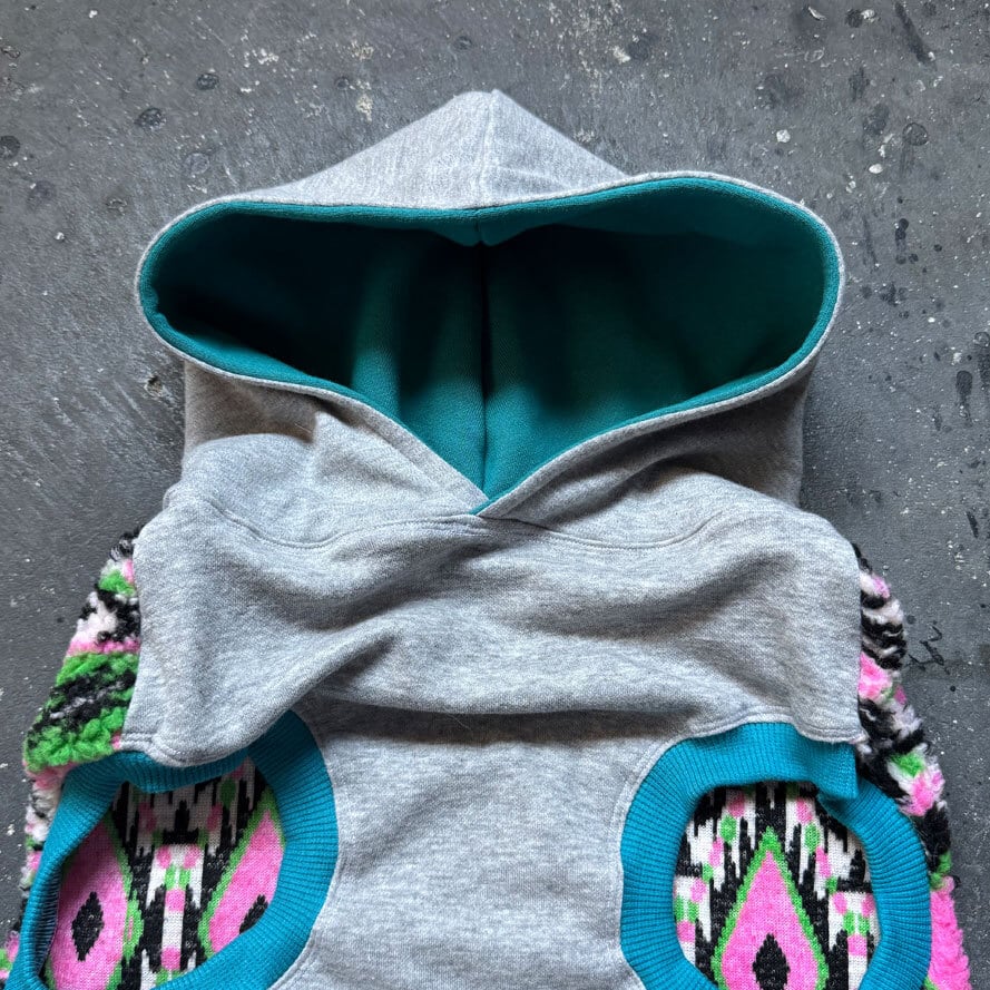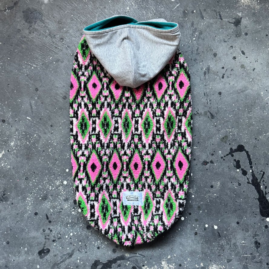 ・フカフカのダイヤがらのボアがヌクヌクなフーディーです。