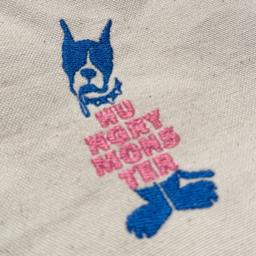 ・表面の丈夫な帆布生地に刺繍でオリジナルロゴが入った小物用のポーチです。